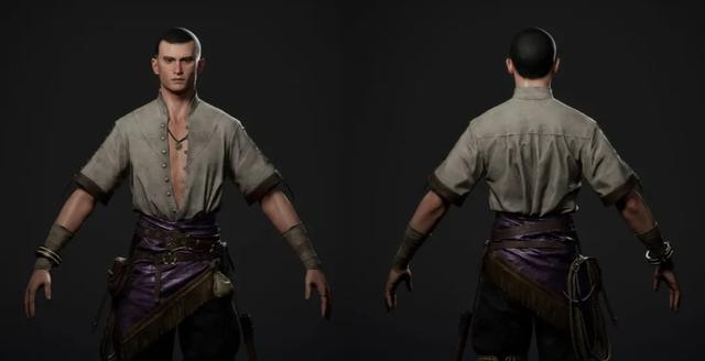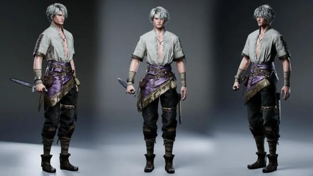 我首先在 ZBrush 中制作高模,重点关注身体、腰带和匕首的整体形状和结构。高多边形完成后,我转到 Maya 进行重新拓扑处理。在细化低多边形版本后,我将其导入 Substance 3D Painter 进行纹理处理。当一切完成后,我将模型带入虚幻引擎进行最终展示。