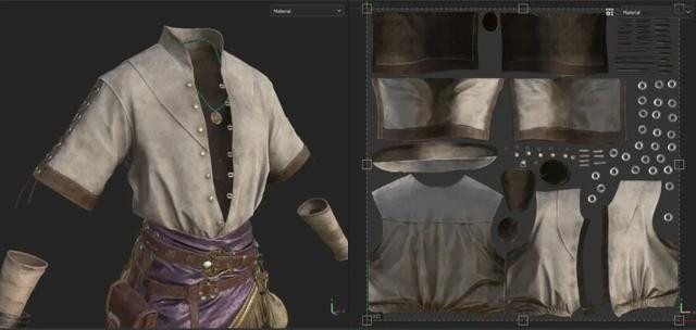 所有复杂的细节,如项链、扣环和装饰物,都是在 ZBrush 中手工雕刻而成的。为了增强真实感,我使用了虚幻引擎中的细节贴图来创建更逼真的材质。对于服装,我首先使用 Marvelous Designer 确定基本形状和面料。然后我在 ZBrush 中对这些褶皱进行改进和艺术优化,以实现更自然、更动感的外观。